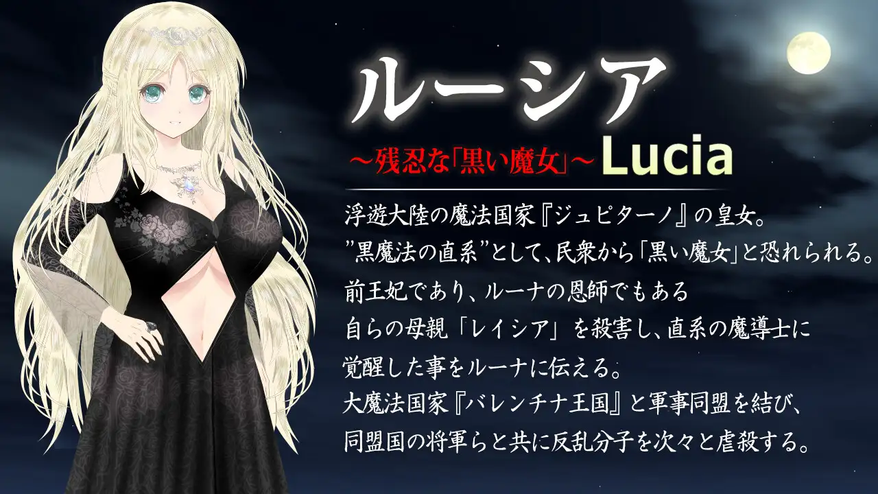位于比地面更远更高的美丽漂浮大陆“魔法国家朱庇塔诺”皇女、被誉为“直系魔导士”的皇女露西亚,代替国王统治着朱庇塔诺。