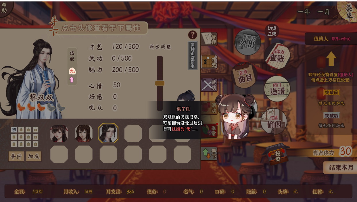 -重做了前期的新手引导,花10体力外出功能改为1年6月开启,委托将于第2年开启