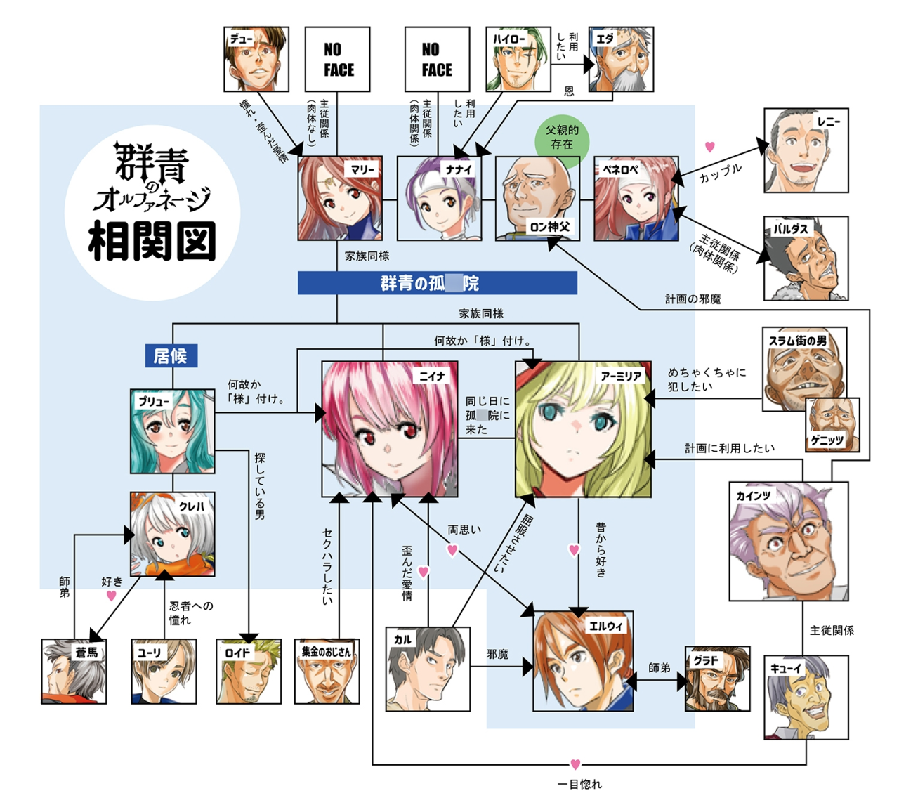 战争结束后不久,皇帝去世了,帝国就这样静静地从历史中消失了。好不容易才幸存下来的帝国出身的孤儿们被慈悲的索拉赫神父“罗恩”收养,在被称为“群青”的孤儿院受到保护。