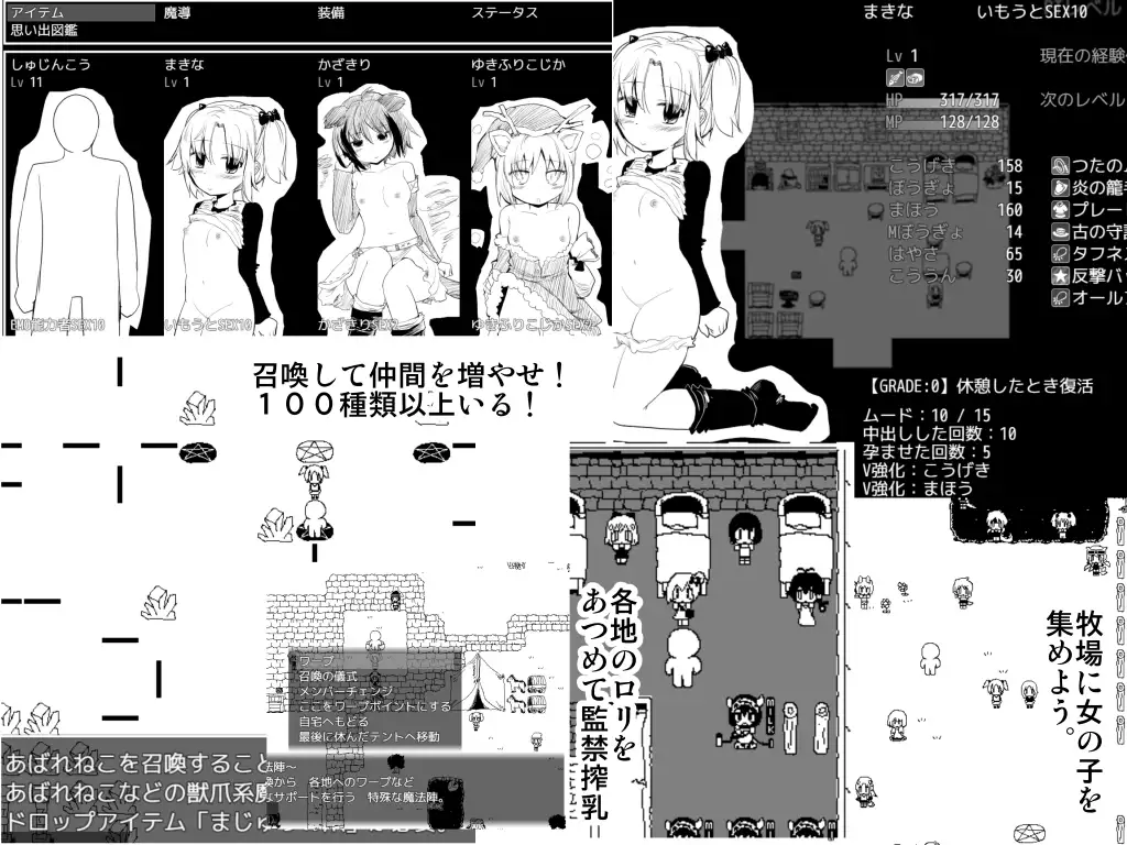 而且游戏中所有的敌人,都是各种风格的少女和魔物娘在战斗中将其殴打致虚弱,就可以强制播种,之后作为奴隶抓捕