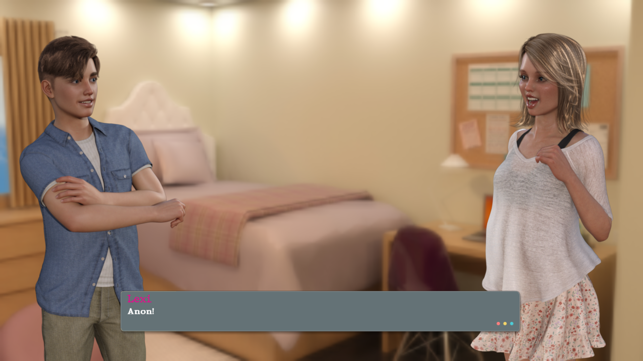 【欧美SLG/汉化/动态】校园机密0.13汉化版【PC/1.01G/更新】Campus Confidential [v0.13] 概述:校园机密是一款引人入胜的成人主题高品质约会模拟游戏,目前处于早期开发阶段,完全由我们的 Patreon 社区支持。故事讲述了一个刚上大学一年级的年轻大学生。他在高中时是个怪胎,但打算在大学里改变这一切。幸运的是,他最好的朋友之一莱克西和他住在同一个宿舍。更新日志:v0.13为朱莉添加了新场景。为莱克西添加了新场景。为克莱尔添加了新场景。添加了新的按摩场景(“额外按摩”)。您需要再次进行基本按摩才能解锁。在 Julie 电脑上的照片文件夹中添加了一张新照片。添加了水疗桑拿场景…抱歉添加了比安卡的新场景。### 修复了朱莉在拍摄照片时手缺失的场景。修复了与其他角色对话时出现宿舍走廊背景的问题。修复了点击宿舍商店目录外时 UI 消失的问题。### 已更改更新了 Lexi 的一项资产,其中她的姿势看起来很奇怪。更新了角色状态代码以尝试允许保存文件在未来版本中工作。