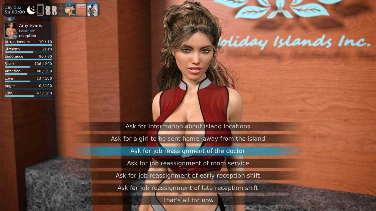 【欧美SLG/汉化/动态】假日岛0.4.0.0汉化版【PC+安卓/3.66G/更新】Holiday Island [v0.4.0.0]概述:您(玩家)刚刚中了彩票,可以在一个偏远的太平洋小岛上度假……但不是普通的小岛!从海滩到卧室,岛上到处都是世界上最漂亮的女孩!(游戏介绍部分详细介绍了这一切!)除了巨乳、完美臀部和各种类型的……比方说,"不穿衣服的亲密接触 "之外,你的角色还将揭开一个越来越大的谜团,并发现自己正处于谜团的中心。更新日志:0.4.0.0939个额外的渲染、视频或声音文件(仅包括后期处理、完成的渲染)20 个新的手机背景297 个更新的渲染