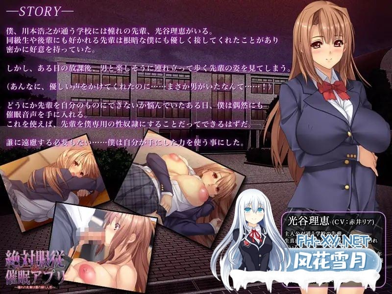 游戏有动态CG 川本只能目送着混杂在人群中的两个人,对于理荣和男人交往这件事感到愤怒。当我烦恼着日后能否想办法让前辈成为我的所有物时 有的男人甚至连走在前面的路都没有,他的包里掉出装有催发音源的MP3播放器。我叫了一声,他就离开了。我想怎么办才好,就往里面一看。 里面的教材上写着使用催〇声源的方法,如果使用这个方法的话,理惠就可以随心所欲了。 虽然半信半疑,但为了充分利用抓住的机会,川本还是采取了行动。