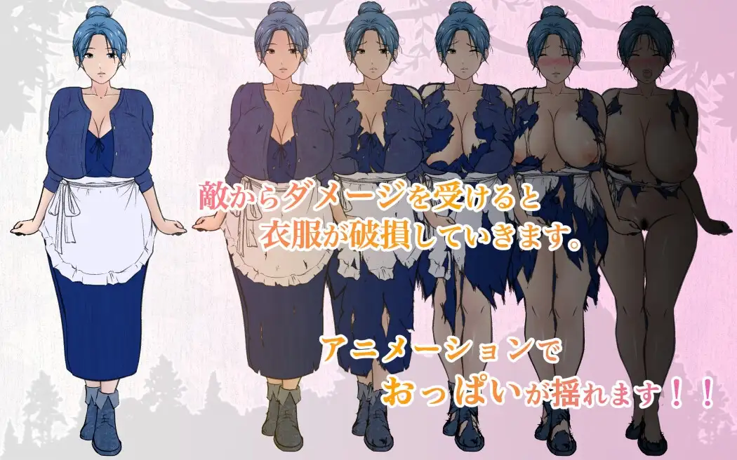 受到敌人攻击时,母亲的衣服会逐步损坏(共5个阶段),该状态会反映在画面上。